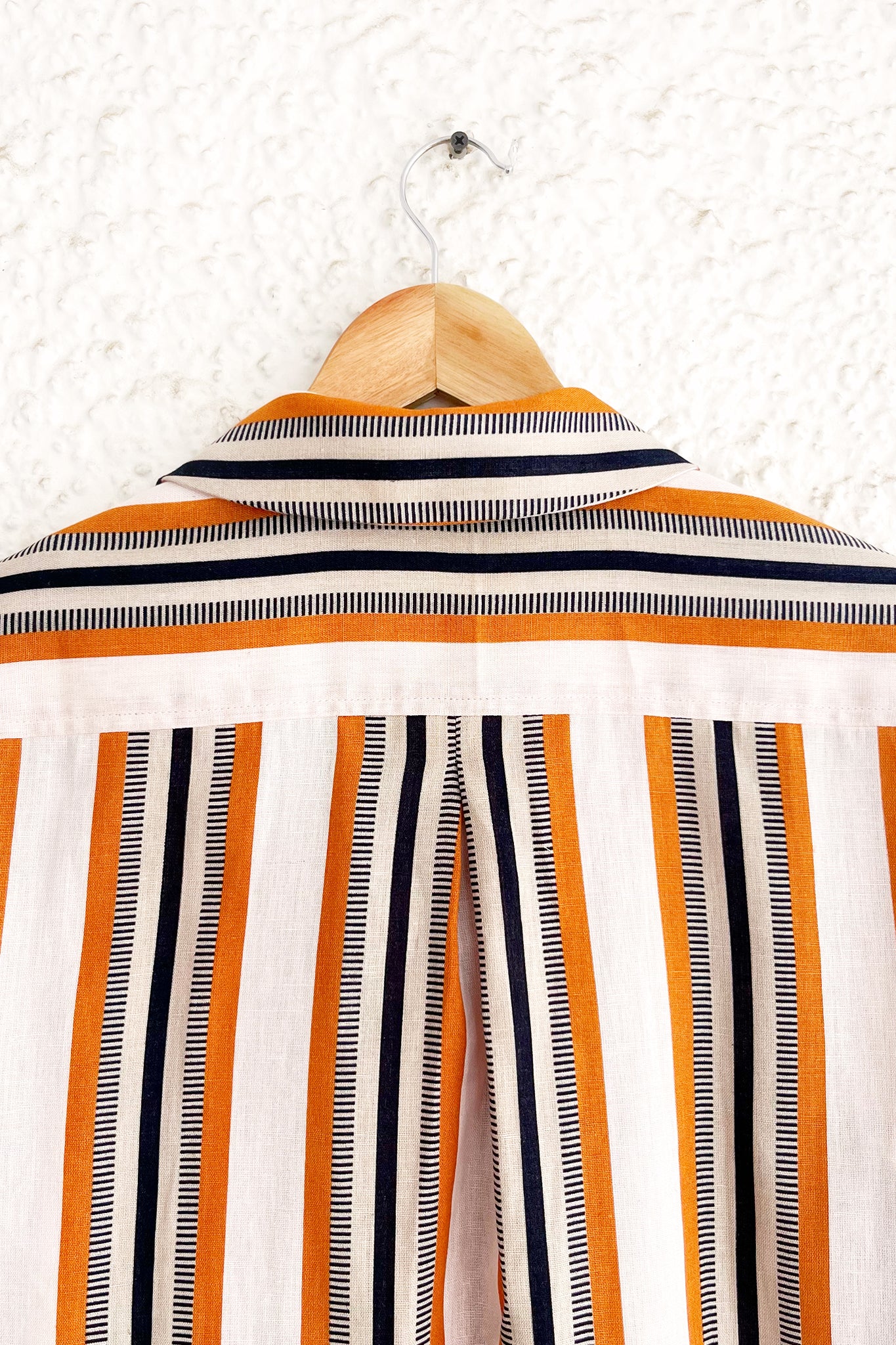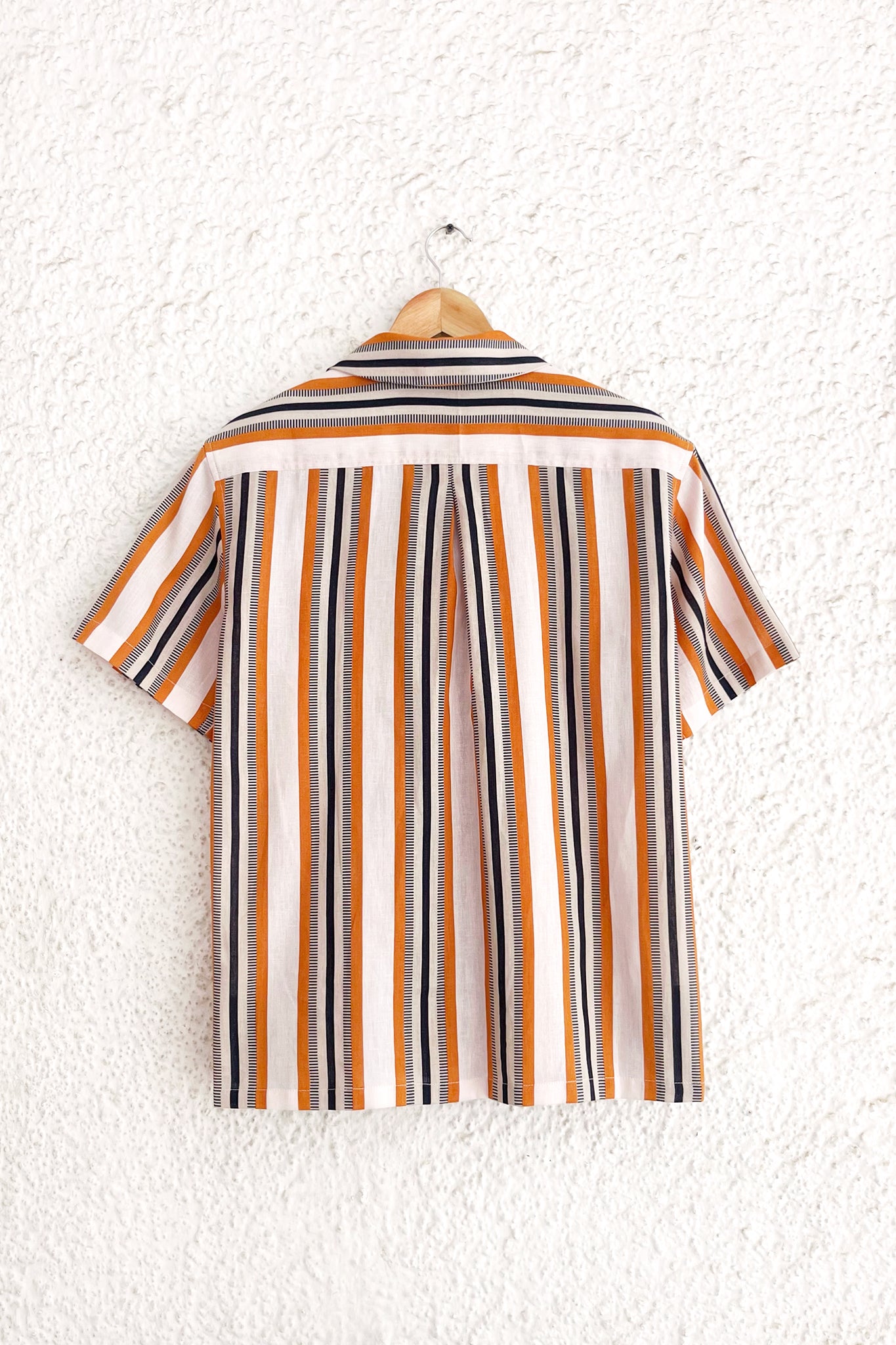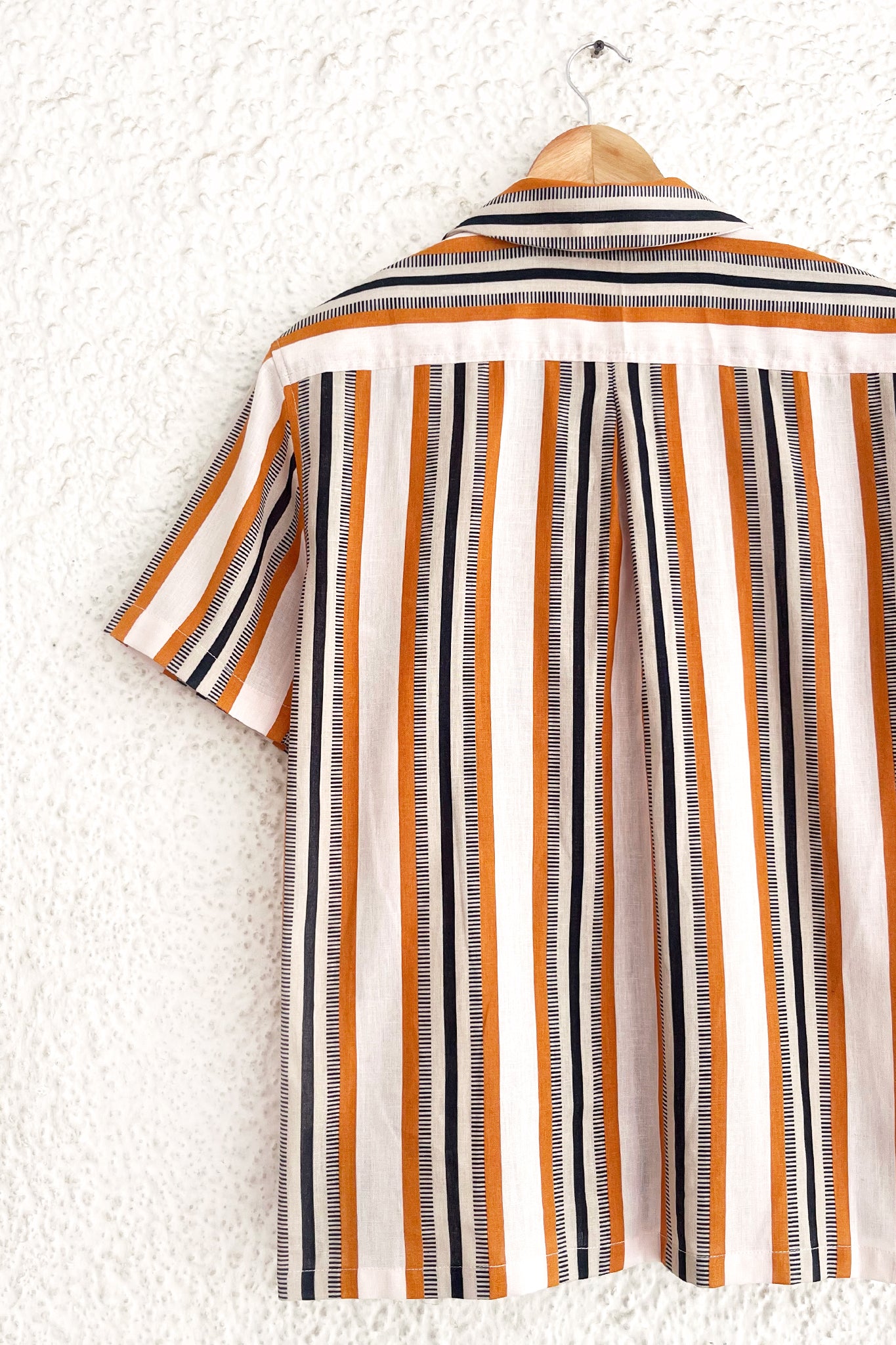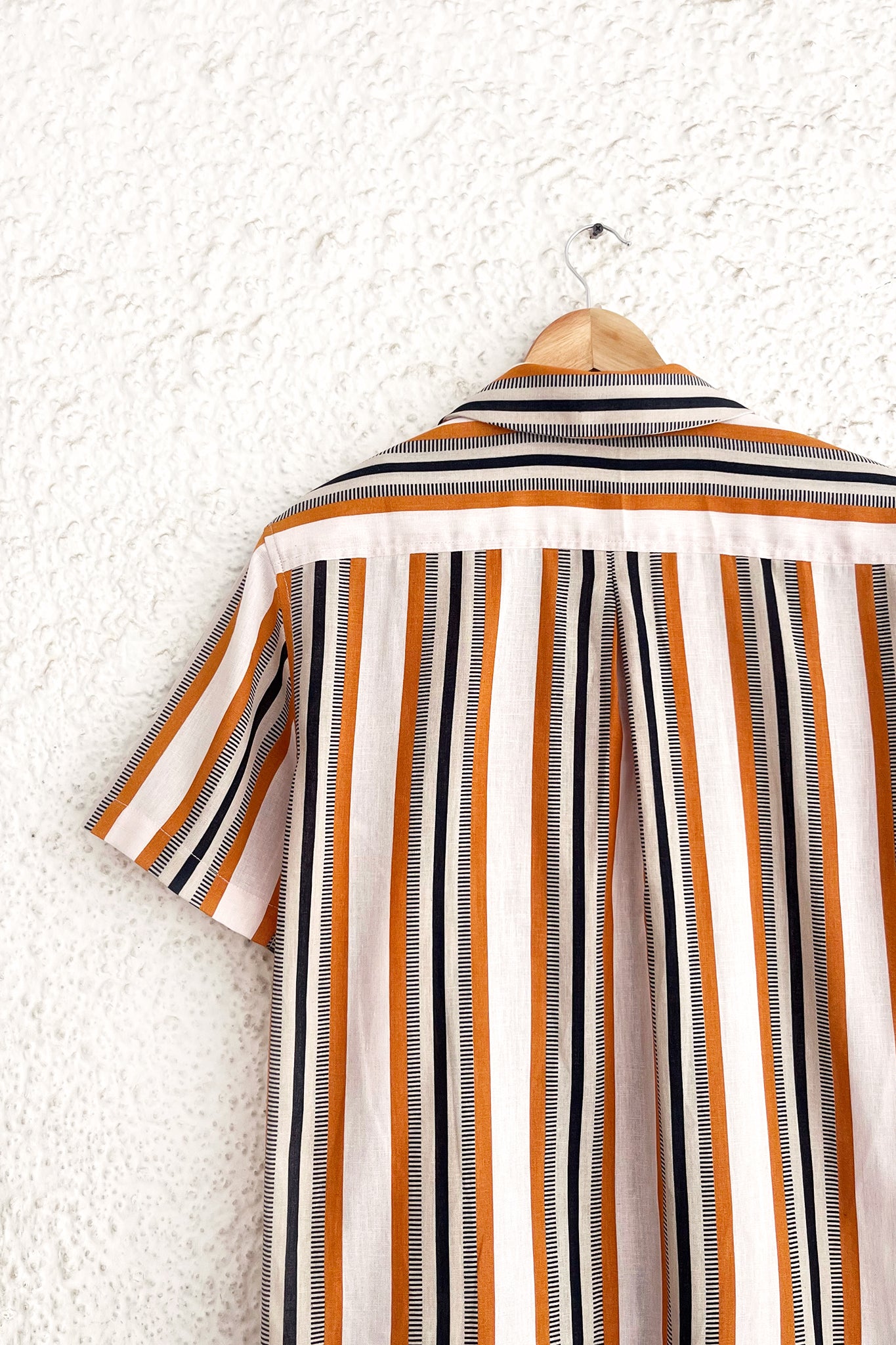 This muted but striking shirt features a woven textured stripe in a nostalgic colour palette, and a casual silhouette ideal for weekend dressing.