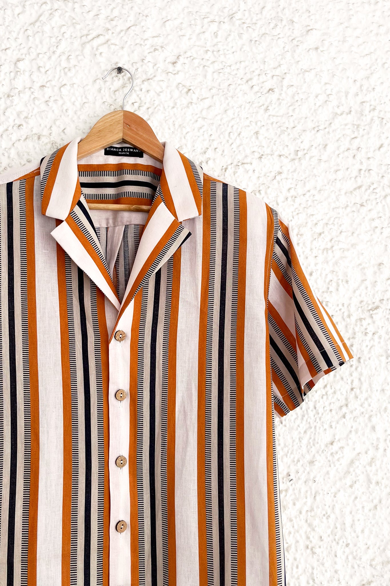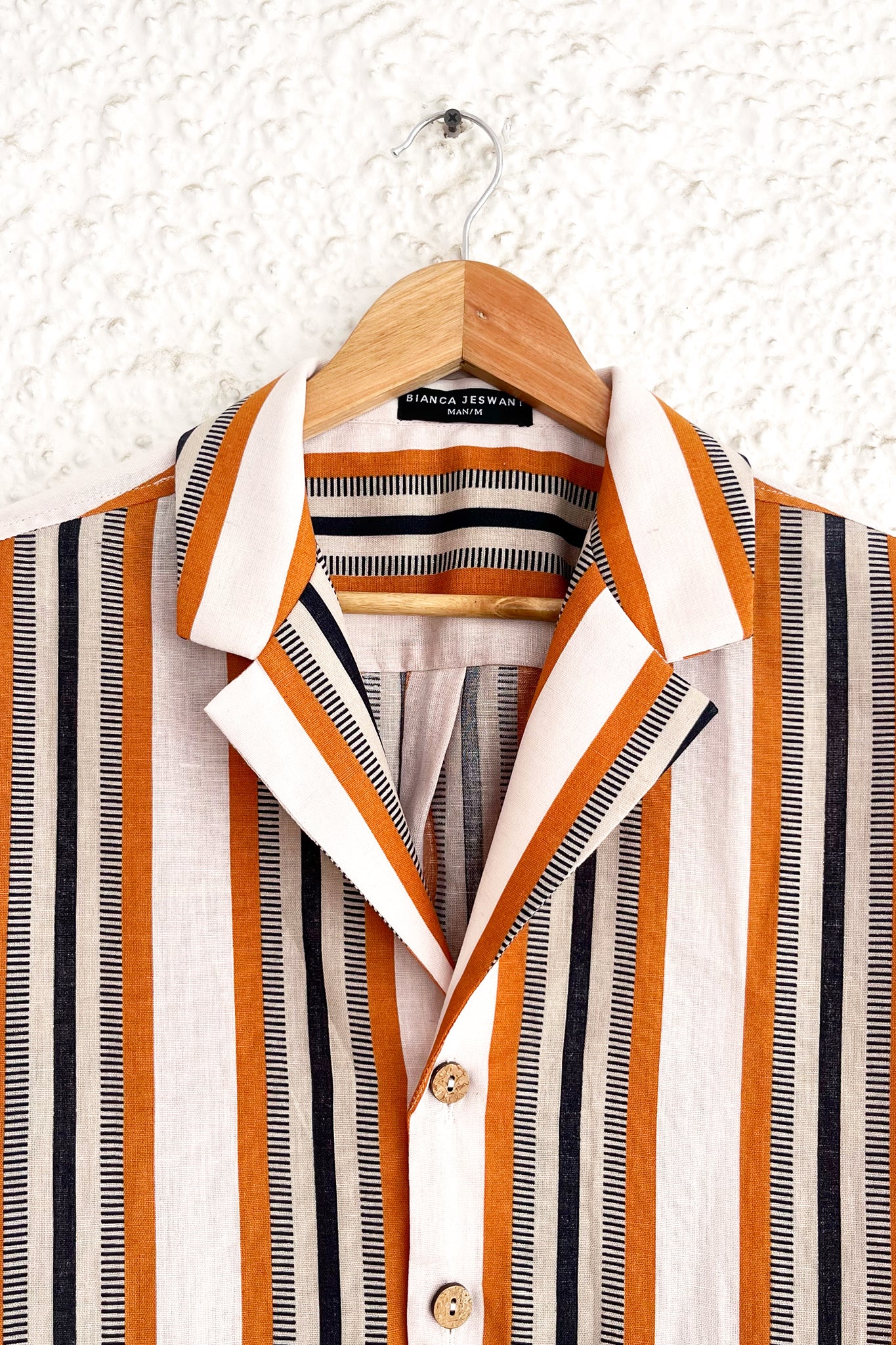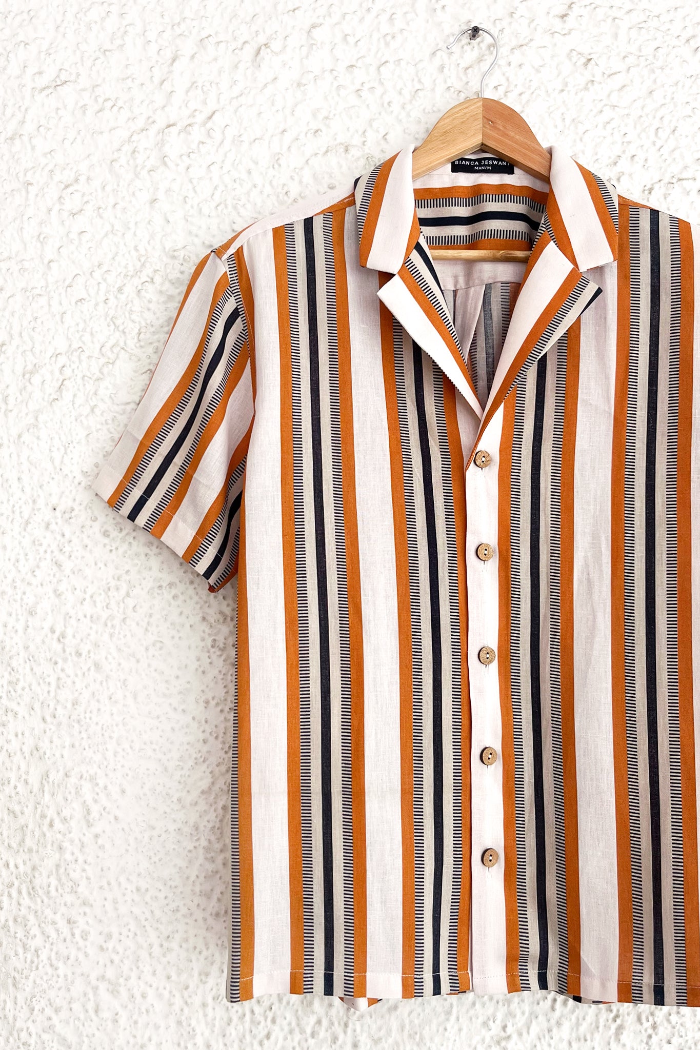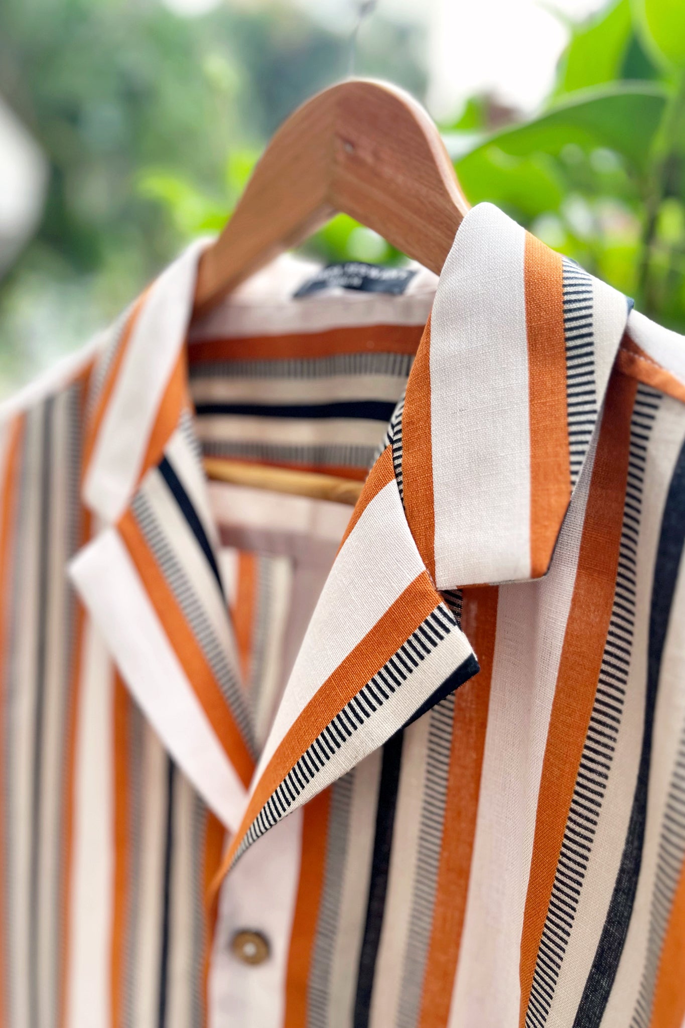 This muted but striking shirt features a woven textured stripe in a nostalgic colour palette, and a casual silhouette ideal for weekend dressing.